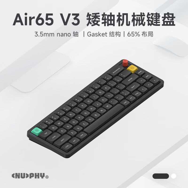 京东 NuPhy Air 65 V3 键盘 黑色 649 元直达链接Air V3 系列矮轴机械键盘采用铝合金上盖 + ABS 底壳的外部设计;厚度 13.2mm,支持 4° / 8° / 10° 三档倾斜调整;内部则采用 Gasket 结构,配备 PC 定位板和四层吸声填充;集成 2500mAh 电池,拥有 750 小时 / 90 天续航。
