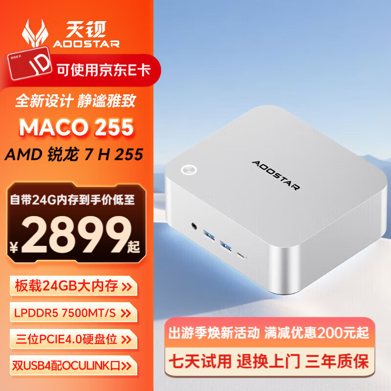 京东天钡 MACO 迷你主机 24G LPDDR5 内存【无硬盘】银色 锐龙 7 H255 处理器新款 AMD R7 锐龙 H255 电脑整机游戏小型商用 MINI 台式机 PC 配 OCuLink 及 USB4 可扩展独显 2899 元直达链接2026 年数码家电政府补贴持续进行中,IT 之家为大家汇总国补领券地址,买数码家电之前记得领取:点此查看。