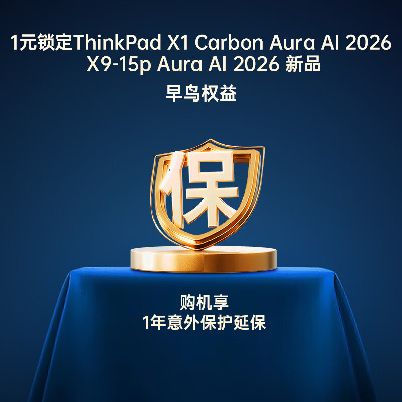 京东 ThinkPad X1 Carbon /X9-15p Aura 2026 笔记本电脑 1 元权益包 1 元直达链接此次活动将于 4 月 24 日 23:59:59 结束,适用于 ThinkPad X1 Carbon Aura Al 元启版 2026、ThinkPad X9-15p Aura Al 元启版 2026、ThinkPad X14 AI 元启版 2026 笔记本电脑。